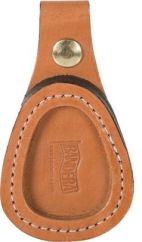 It protects your boot or shoe and gun barrel when resting a safety-checked gun barrel on it. Made of hand crafted leather, the boot saver loops and snaps over your boot or shoe laces. Hand finished leather edges. Black in color.